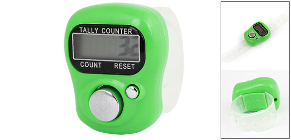 Product Name Finger Counter Main Material Plastic Case Size 3.5 x 2.8 x 1.4cm/1.4" x 1.1" x 0.6"(L*W*H) Band Size 10.5 x 1.5cm/ 4.1" x 0.6"(L*W) Fit Finger Girth 5 - 8cm/ 2" - 3.1" Case Color Green Band Color Clear Net Weight 10g Package Content 1 x Finger Counter - Reviews