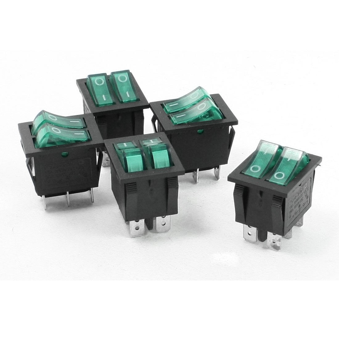 Green Illuminated Light On/Off 2 Boat Rocker Switch 6A/250V 20A/125V AC 5 Pcs