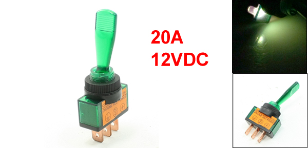 Green Illuminated Light SPST ON/OFF 2 Position 3P Toggle Switch DC 12V 20A