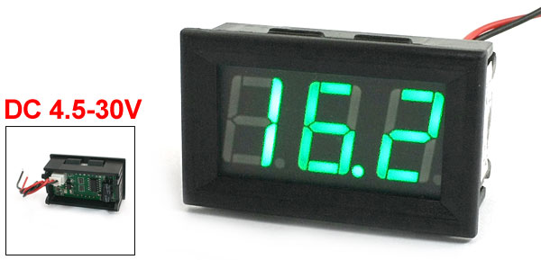 Product Name Digital Voltmeter Module Display 3 Digits Green LED Voltage Range DC 4.5-30V Total Size 48 x 29 x 22mm/1.9" x 1.1" x 0.87"(L*W*T) Mounting Size 45 x 27mm/1.8" x 1.1"(L*W) Cable Length 14.5cm / 5.7" Material Plastic, PCB, Iron Main Color Black Weight 17g Package Content 1 x Digital Voltmeter Module - Reviews