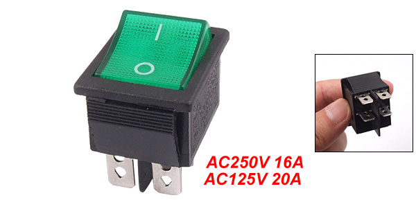 Item Name Rocker Switch Position On-off Contact Type DPST Voltage & Current AC250V, 16A AC125V, 20A Mounting Hole Size 2.8 x 2.2 x 2.7cm/ 1.1" x 0.86" x 1.1" (L*W*Depth) Overall Size 3.3 x 2.5 x 3.5cm/ 1.3" x 1" x 1.4"(L*W*H) Light Color Green Body Color Green, Black Material Plastic, Metal Total Net Weight 12g Package Content 1 x Rocker Switch - Reviews