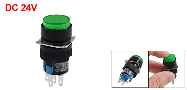 DetailsGreen Light NO NC Self-locking Contact Push Button Switch DC 24V  Item Name Push Button Switch Switch Type Self-locking Contact ( NO / NC) Switch Working Voltage AC 250V 0.5A Indicator Lamp Voltage DC 24V Button Cap Color Green Switch Color Green, Black Button Cap Dia. 1.5 cm / 0.6" Mounting Thread Dia. 15mm / 0.59" Total Size 1.8 x 1.8 x 4.7cm / 0.7" x 0.7" x 1.8"(L * W* H) Material Plastic w Electronic Parts Net Weight 7g Package Content 1 x Push Button Switch