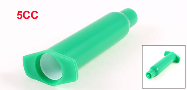 Product Name Dispenser Barrel Material Plastic Color Green Capacity 5CC Luer Lock Tip Dia. 4mm/ 0.16" Tube Size 7.5 x 1.55cm / 3" x 0.6"(L*D) Overall Size 7.7 x 3cm / 3" x 1.2"(L*W) Weight 5g Package Content 1 x Syringe Dispenser Barrel
