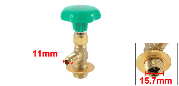 Product Name Can Tap Valve Color Gold Tone,Green Material Brass, Plastic Side Thread Diameter 11mm/ 0.43" Bottom Thread Diameter Inner: 11mm/ 0.43"