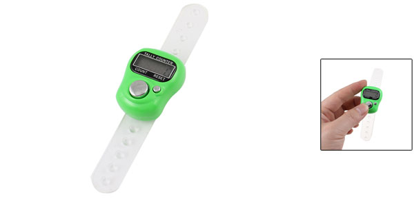 Product Name Finger Counter Main Material Plastic Case Size 3.5 x 2.8 x 1.4cm/1.4" x 1.1" x 0.6"(L*W*H) Band Size 10.5 x 1.5cm/ 4.1" x 0.6"(L*W) Fit Finger Girth 5 - 8cm/ 2" - 3.1" Case Color Green, Silver Tone Band Color Clear Net Weight 10g Package Content 1 x Finger Counter - Reviews