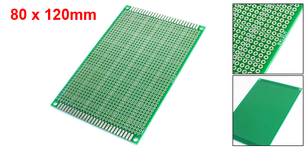 Product Name Universal PCB Board Hole Dia(Approx) 1mm / 0.039" Hole Pitch(Approx) 2.54cm / 0.1" Size(Approx) 80 x 120mm / 3.1" x 4.7"(W*L) Thickness(Approx) 1.5mm / 0.059" Material FR-4 Color Green Net Weight 25g Package Content 1 Pcs x Universal PCB Board - Reviews