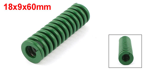 Product Name Die Spring Load Type Heavy Load Color Green Hole Diameter 18mm/0.7" Rod Diameter 9mm/0.3" Free Length 60mm/2.4" Material Alloy Steel Weight 48g Package Content 1 x Die Spring - Reviews