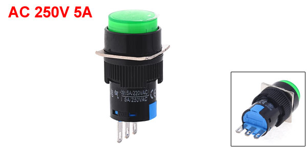 Item Name Push Button Switch Type 1NO 1NC SPDT Voltage, Current AC 250V 5A Button Color Green Button Dia 15mm/ 0.6" Thread Dia 15mm/ 0.6" Total Length( Including Pins) 40mm/ 1.6" Material Plastic, Metal Net Weight 8g Package Content 1 x Push Button Switch - Reviews
