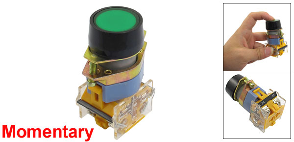 Product Name Push Button Switch Contact Type 1NO 1NC (DPST) Action Type Momentary Button Type Flat Button Ith 10A Ui 660V Terminal Quantity 4 Panel Cutout Diameter 22mm / 0.87"(7/8") Fit Panel Thickness (Max) 7.5mm / 0.3"(Adjustable) Mounting Thread Hole Diameter 4mm / 0.16" Hole Spacing 35mm / 1.38"(Center to Center) Button Diameter 24mm / 0.94" Total Size(Approx) 44 x 29 x 67mm / 1.74" x 1.2" x 2.64" (L*W*H) External Material Plastic, Metal Button Color Green Weight 60g Package Content 1 x Push Button Switch - Reviews