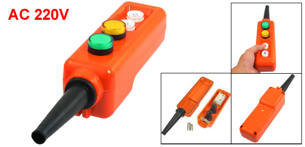 Product Name Hoist Pushbutton Switch Model No. COB COJ2035 Push Buttons Green, Yellow LED Lamp, Up, Down Lamp Color Green, Yellow Lamp Voltage AC 220V Main Body Size 20 x 5.8 x 6.5cm / 7.9" x 2.3" x 2.6"(L*W*H) Insulating Tube Length 10.2cm / 4" Fit Cable Diameter 1.1cm / 0.43" External Material Plastic, Rubber Color Orange Red, Black Net Weight 30g Package Content 1 x Hoist Pushbutton Switch - Reviews