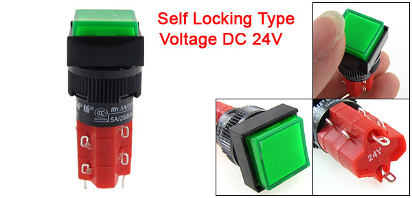 Item Name Push Button Switch Switch Type Self Locking ( 2NO / 2NC) Switch Working Voltage AC 250V 5A Indicator Lamp Voltage DC 24V Ith(Thermal Current) AC 220V 5A Button Cap Color Green Switch Color Green, Red, Black Button Cap Size 1.5 x 1.5cm / 0.6" x 0.6"( L * W) Mounting Thread Dia. 15mm / 0.59" Total Size 1.8 x 1.8 x 4.3cm / 0.7" x 0.7" x 1.7"(L * W* H) Material Plastic w Electronic Parts Net Weight 9g Package Content 1 x Push Button Switch - Reviews