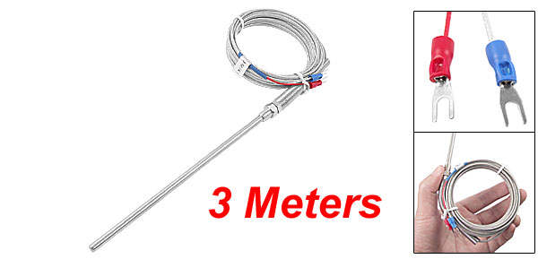 Grounded K Type Thermocouple Temperature Sensor 9.8ft 3 Meter w 2 Fork Terminal