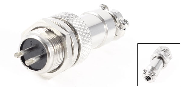 Product Name Aviation Connector Plug Model GX12-2 Rated Current / Voltage 5A / 250V AC Withstand Voltage AC 1500V Insulation Resistence >2000 mOhm Screw Head Diameter 12mm / 0.47" Pin Quantity 2 Pin Total Length 45mm/ 1.8" Material Metal Color Silver Tone Weight 15g Package 1 x Aviation Connector Plug