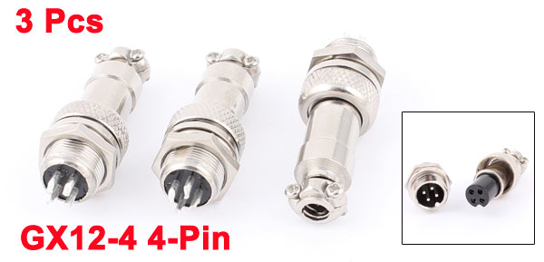 GX12-4 4-Pin 12mm Male Female Panel Metal Connector Aviation Plug 3Pcs