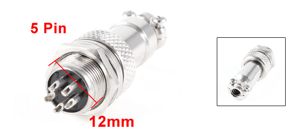 GX12-5 5 Pin Male 12mm Screw Mounting Cable Connector Aviation Plug