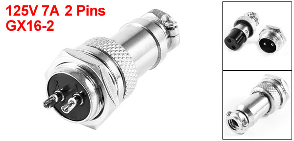 Product Name Aviation Connector Plug Material Metal Model GX16-2 Connector Type Butt Joint Type Pin Quantity 2 Pin (Male) Current / Voltage 7A / 125V Outer Diameter 16mm / 0.6" Total Length 46mm / 1.8" Color Silver Tone Net Weight 20g Package Content 1 x Aviation Connector Plug - Reviews