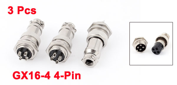 GX16-4 4-Pin 16mm Male to Female Panel Metal Connector Aviation Plug 3Pcs