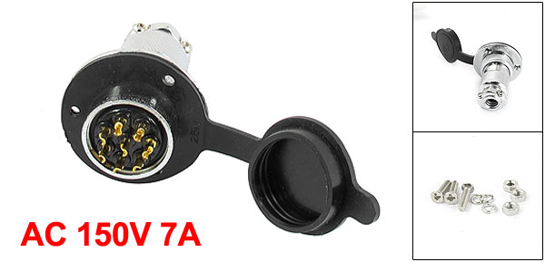 Product Name Aviation Connector Plug w Cover Model GX25-8 Rated Current AC 150V 7A Withstand Voltage AC 2000V Insulation Resistence >2000 mOhm Contact Head Diameter 25mm / 1" Pin Quantity 8-Pin Contacts Pin Diameter 2.5mm/0.1" Flange Diameter 42mm / 1.6" Fixing Hole Dia 3.5mm / 0.13" Fixing Hole Cneter Distance 29mm/1.2" Total Length 66mm/ 2.6" Material Metal,Plastic Color Silver Tone, Black Weight 101g Package 1 x Aviation Connector Plug w Cover