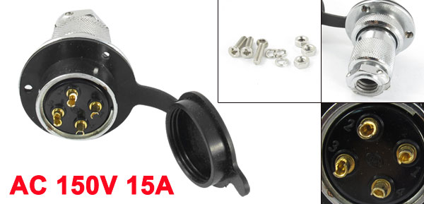 GX30-4 AC150V 15A 30mm Dust Cover 4Pin Aviation Plug Power Connector Adapter