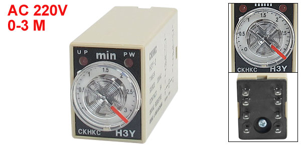 H3Y-2 AC 220V DPDT 0-3 Minutes 3Min 8 Pins Power on Time Delay Relay