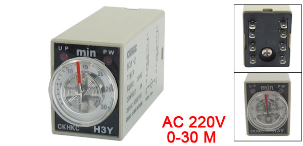 Product Name Time Relay Type H3Y-2 Contact Type DPDT Source AC 220V Contact 5A 250VAC Resistive Load Time Range 0-30 Minutes Number of Terminals 8 Pins Body Size (Approx.) 53 x 27 x 20mm/ 2.1" x 1.1" x 0.8"(L*W*H) Color Gray, Black Net Weight 40g Package Content 1 x Time Relay