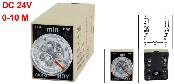 Product Name Time Relay Type H3Y-2 Contact Type DPDT Source DC 24V Contact 5A 250VAC Resistive Load Time Range 0-10 Minutes Number of Terminals 8 Pins Body Size (Approx.) 53 x 27 x 20mm/ 2.1" x 1.1" x 0.8"(L*W*H) Color Gray, Black Net Weight 39g Package Content 1 x Time Relay
