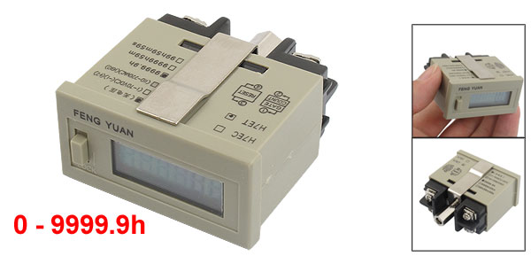 Product Name Time Counter Model H7ET-BM-h Number of Digits 6 Counting Range 0 - 9999.9h Counter Size 4.8 x 2.4 x 5.2cm/ 1.9" x 0.9" x 2" (L*W*T) Mounting Size 4.4 x 2.2 x 4.2cm/1.73" x 0.86" x 1.65(L*W*Depth) Color As Picture Shown Net Weight 51g Package Content 1 x Time Counter - Reviews