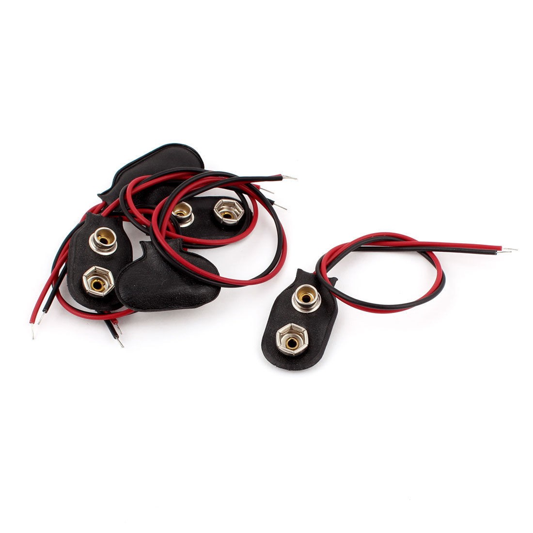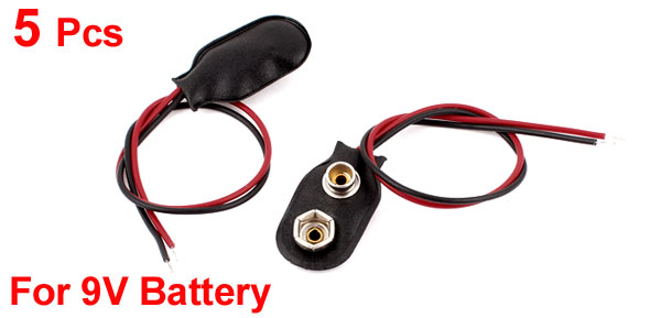 DetailsHard Shell I Type Snap in 9V 9 Volt 2 Wire Battery Clip Connectors Black 5pcs  Main Color Black, Red Fit for 9V Battery Brand DMiotech Net Weight 10g Country of Manufacture CHINA Cable Length 15cm / 6" Package Content 5pcs x 9V Battery Connectors Material Faux Leather, Metal Body Size 2.9 x 1.5 x 0.6 cm / 1.1" x 0.59" x 0.24" (L*W*T)