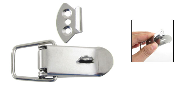 Product Name Straight Loop Latch Material Metal Color Silver Tone Total Size (With Strike) 9 x 3.1 x 1.2cm/ 3.5" x 1.2" x 0.5" (L * W* T) Latch Size(Without Loop) 5.5 x 2.3 x 1.3cm/ 2.1" x 0.9" x 0.5" (L * W* T) Mounting Hole Diameter 4mm / 0.16" Fit Lock Hole Diameter 5mm / 0.2" Net Weight 35g Package Content 1 x Straight Loop Latch