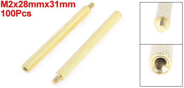 Product Name Brass Pillars Standoff Thread Size M2 Male x M2 Female Male Thread Length 3mm/ 0.12" Body Length 28mm/ 1.1" Total Size(Approx.) 31 x 3mm/ 1.2" x 0.12" (L*Max.D) Material Brass Color Gold Tone Net Weight 155g Package Content 100(±2%) x Brass Pillars Standoff - Reviews