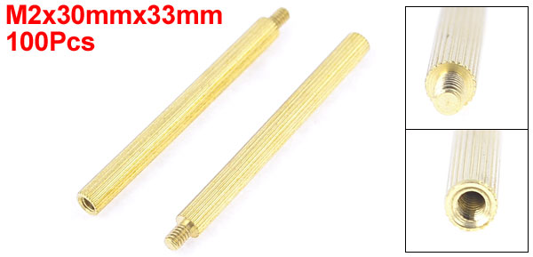 Hardware M2x30mmx33mm Cylinder Brass Stand Off Spacer Male to Female 100Pcs