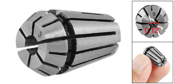 Product Name Spring Collet Model No. ER11-3 Clamping Range 3.0-2.5mm/0.12"-0.1" Clamping Diameter 3mm/ 0.12" Overall Size 11.5 x 18mm/0.45" x 0.7"(Dia*Length) Material Stainless Steel Color Silver Tone Net Weight 7g Package Content 1 x Spring Collet - Reviews