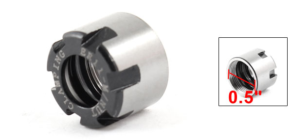 Product Name Collet Nuts Model ER11 Hole Diameter 8.5mm/ 0.33" Thread Diameter 12mm/0.5" Overall Size(Approx.) 16x12mm/ 0.6" x 0.5" (D*L) Material Metal Color Black, Silver Tone Net Weight 7g Package 1 x Collet Nuts - Reviews