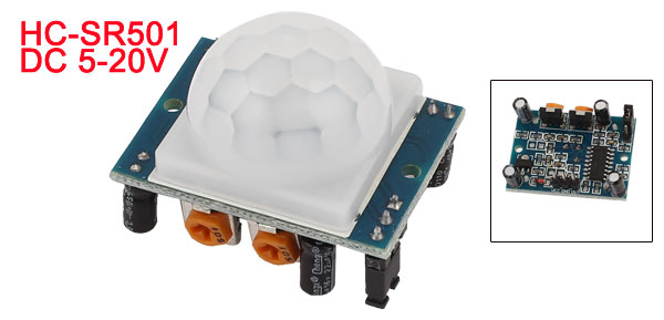 Product Name Infrared Motion Sensor Module Model HC-SR501 Working Voltage DC 5-20V Output Current 65uA(DC3.3V) Sensor Range <7M Sensor Angle <110C Trigger Mode H:Repeated, L:No-repeat Time Range 0.3-18s(Adjustable) Blocking Time 0.2s Working Temperature -15C -70C Total Size 33 x 25 x 25mm/1.3" x 1" x 1"(L*W*H) Sensor Head Diameter 22mm/ 0.87" Screw Hole Dia 2mm Material Plastic, Electronic Part Color Blue, White Net Weight 15g Package 1 x Infrared Motion Sensor Module - Reviews