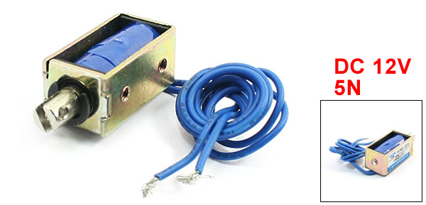 Current 300mA Body Size 29 x 15 x 13mm/1.1" x 0.59" x 0.51"(L*W*H) Plunger Bar Dia 6mm/0.24" Total Length 34mm/1.3" Cable Length 21cm/8.3" Color Brass Tone, Blue Weight 30g Package Content 1 x DC Solenoid Electromagnet - Reviews