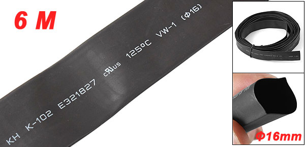 Heat Shrink Tubing Tube Diameter 16mm 5/8" x 6M 19.7ft Black
