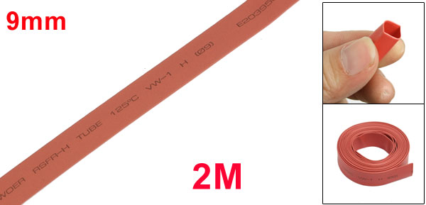 Heat Shrink Tubing Tube Diameter 9mm 23/64" 2m 6.6FT Red