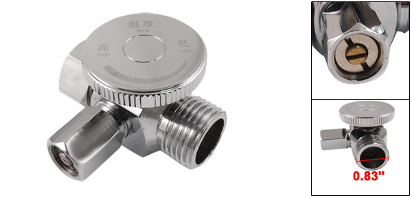 Product Name Hot Water Control Valve Female Thread Dia. 11mm/0.43'' 18.5mm/0.73'' Male Thread Dia. 21mm/0.83'' Overall Size 53 x 43 x 35mm/2.1'' x 1.7'' x 1.4'' (L*W*H)