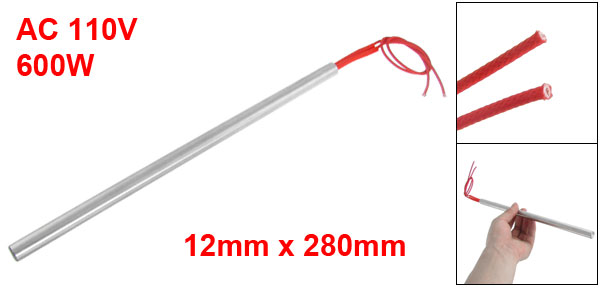 Product Name Cartridge Heater Material Stainless Steel, PVC, Nylon Rated Voltage AC 110V Power 600W Heater Size (Approx.) 12 x 280mm / 0.47" x 11" (D * L ) Wire Length(Approx.) 28.5cm / 11.2" Color Silver Tone, Red Weight 133g Package Content 1 x Cartridge Heater - Reviews