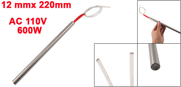 Product Name Cartridge Heater Material Stainless Steel, PVC, Nylon Rated Voltage AC 110V Power 600W Heater Size (Approx.) 12 x 220mm/ 0.47" x 8.7" (D * L) Wire Length (Approx.) 29cm/ 11.4" Color Red, Silver Tone Weight 108g Package Content 1 x Cartridge Heater - Reviews