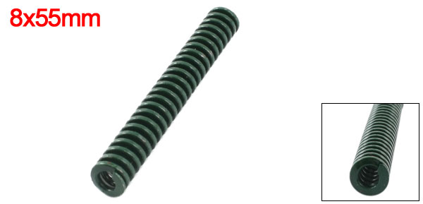 Product Name Die Spring Load Type Heavy Load Color Green Hole Diameter 8mm/0.31" Rod Diameter 4mm/0.16" Free Length 55mm/2.2" Material Metal Weight 11g Package Content 1 x Die Spring - Reviews