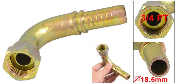 Product Name Oil Pipe Connector Design Right Angle Type Material Metal Thread Size 3/4" PT Female Thread Dia. 26mm Barb End Outer Dia. 18.5mm/ 0.73" Overall Size 115 x 80 x 32mm/ 4.5" x 3.1" x 1.3"(L*W*T) Weight 286g Package Content 1 x Oil Pipe Connector - Reviews