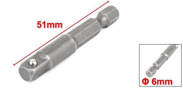 Product Name Power Extension Socket Bits Square End Size 6mm/1/4" Shank Diameter 6mm/0.24" Total Length 51mm/ 2" Color Dark Gray Material Chrome-Vanadium Weight 16g Package Content 1 x Power Extension Socket Bits