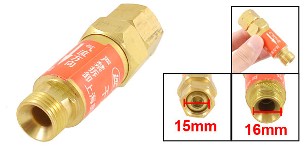 Product Name Dry Flashback Arrestor Main Color Gold Tone Mateiral Plated Metal Medium Acetylene Gas, Liquefied Petroleum Gas etc. Working Pressure 0.01 - 0.15 Mpa Flow Capacity more than 3 cubic meter/hour Male Thread Size 16mm/ 0.63" Female Thread Size 15mm/ 0.59" Overall Size 70 x 2cm/ 2.75" x 0.79" (L*Max. D) Net Weight 95g Package 1 x Dry Flashback Arrestor - Reviews