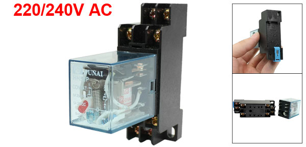 Product Name Electromagnetic Relay Model No. HH52P Socket Model No. DYF08A Coil Voltage 220/240VAC Contact Capacity 5A 250VAC /28VDC Type DPDT Number of Terminals 8 Mount Rail Type 35mm DIN Rail Fixing Mount Hole Size 6 x 4mm/0.24" x 0.16"(L*W) Total Size (Approx.) 68 x 22 x 65mm/2.7" x 0.9" x 2.6"(L*W*H) Shell Material Plastic Main Color Black, Clear Blue Net Weight 57g Package Content 1 x Electromagnetic Relay - Reviews
