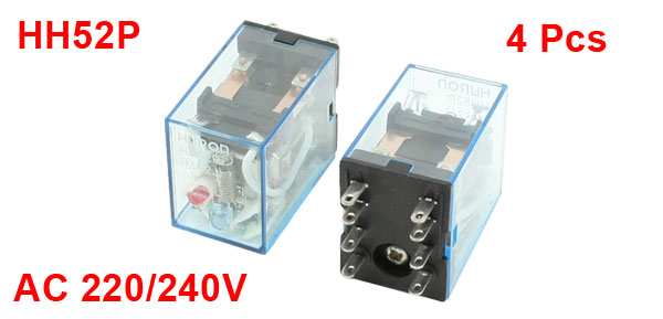 HH52P AC 220/240V Coil DPDT 8-Pin 8P Electromagnetic Power Relay 4 Pcs
