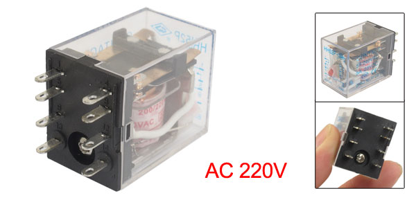 HH52P AC 220V Coil 8 Pin DPDT Plug-in LED Indicator Power Relay 5A 240VAC 28VDC