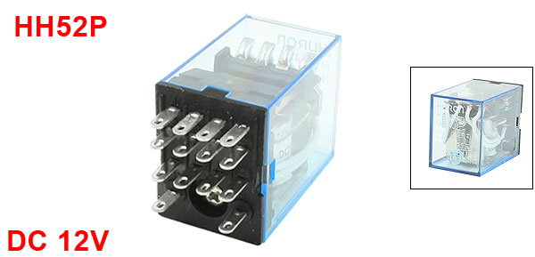 Product Name Electromagnetic Relay Model No. HH52P Coil Voltage DC 12V Contact Capacity 5A 240VAC /28VDC Type DPDT Pin Quantities 8 Pin Size 6 x 2.6mm/0.24" x 0.1"(L*W) Overall Size (Approx.) 27 x 20 x 35mm/1.1" x 0.8" x 1.4"(L*W*H) Shell Material Plastic Main Color Clear, Black Net Weight 31g Package Content 1 x Electromagnetic Relay - Reviews