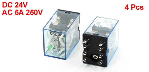 HH52P DC 24V Coil DPDT 2NO 2NC 8P General Purpose Power Relay 4 Pcs
