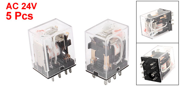 HH52PL AC 24V Coil 8-Pin DPDT Red LED Light Electromagnetic Relay 5 Pcs